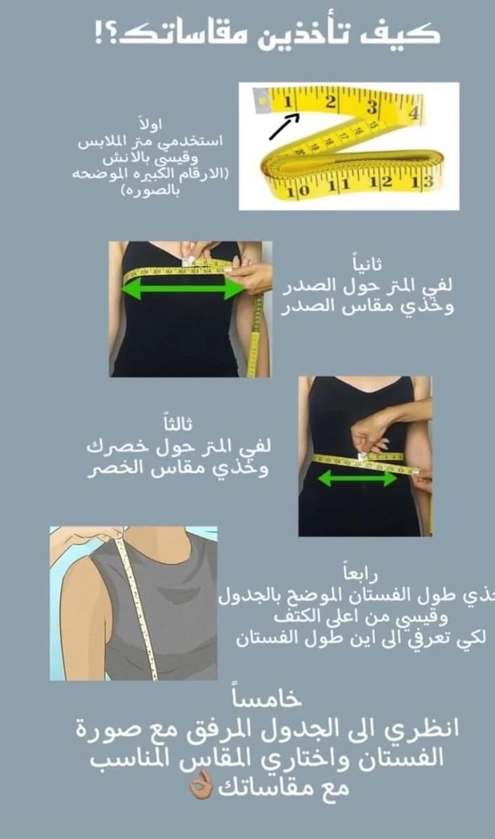عزيزتي الأنيقة الرجاء التأكد من اختيار المقاس الصحيح.
