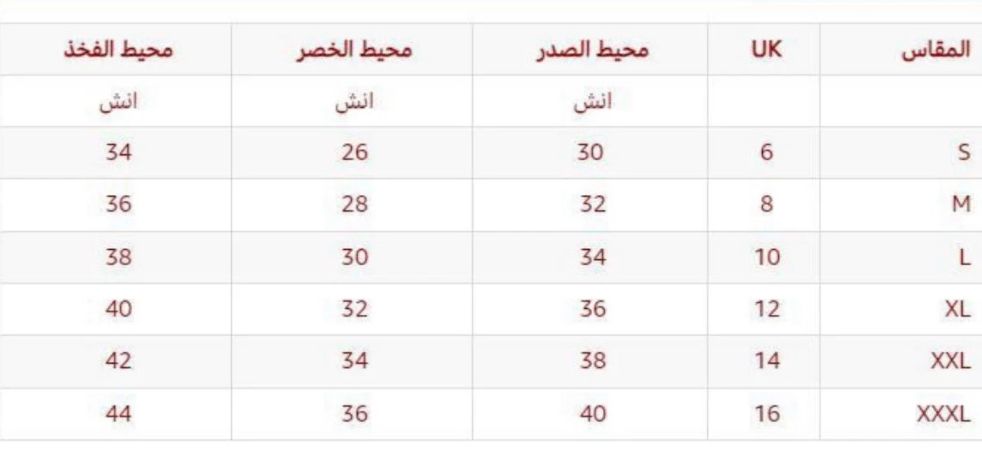 للمساعدة في المقاسات ارجو التواصل مع الدعم الفني